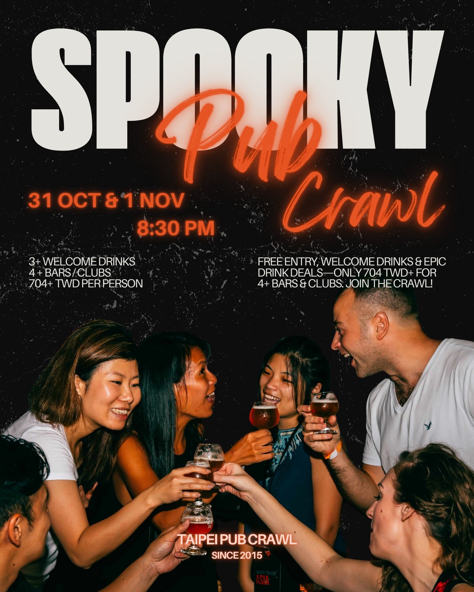 Join the spookiest party of the year! Dress up, drink up, and crawl through Taipei’s best nightlife spots with welcome drinks, exclusive deals, and wicked vibes all night long. Costumes highly encouraged. Let the haunting begin!